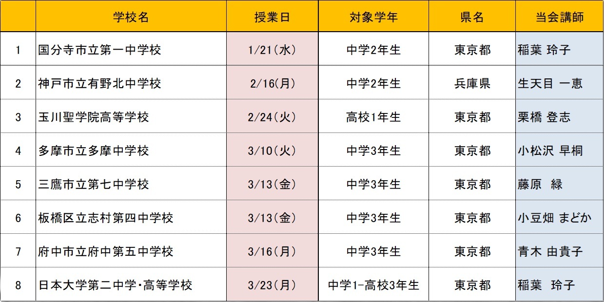 4月からの新学期スタートに伴い、がん教育授業のご依頼はいったん落ち着きますが、夏以降再び依頼が増えてきます。