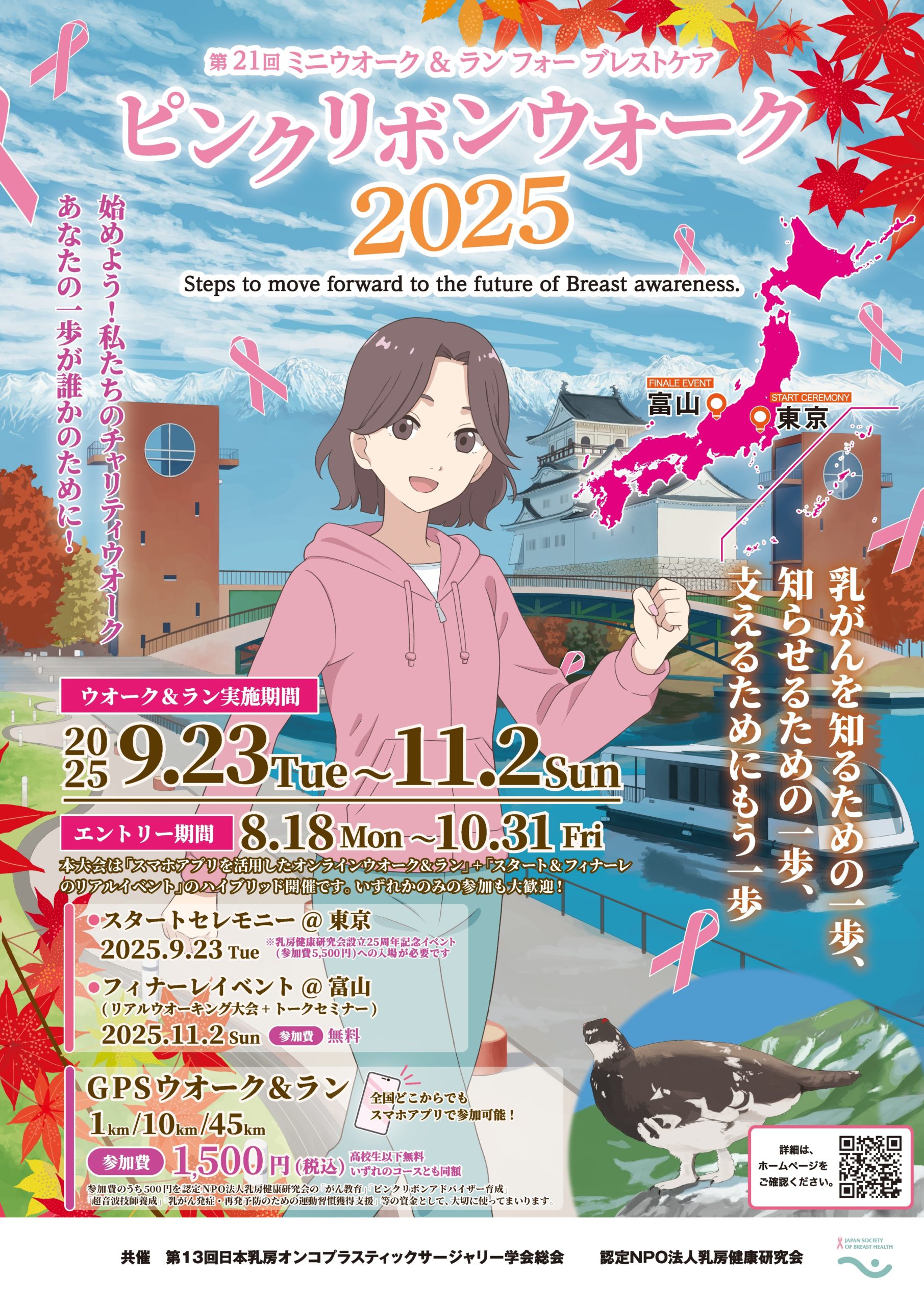 【ワークショップの部】はピンクリボンウオーク2025のギャザリングイベント(つどい)です。アプリだけでなく、リアルでもつながって大会を盛り上げましょう。エントリーのサポートもしますので、操作が不安な方もぜひ、ご参加ください。 *本イベントの様子は動画撮影を行い、後日、配信予定です。ご参加の際は予めご了承ください。【セミナーの部】10:00 (9:30開場)−12:00 (参加費 無料)